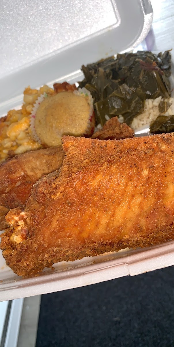 The menu at Soulfood Sistas is a celebration of Southern comfort food at its finest. One of the standout dishes is the fried chicken. Golden brown and perfectly crispy on the outside, yet juicy and tender on the inside, it’s clear that this dish is a fan favorite for a reason. Paired with classic sides like buttery mashed potatoes, cornbread, and rich mac and cheese, it’s a meal that’s as satisfying as it is delicious.